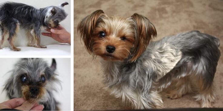 そして並んであるケージを見ると子犬達ががいる、その中で1匹だけガリガリの老犬ヨーキーがいてた