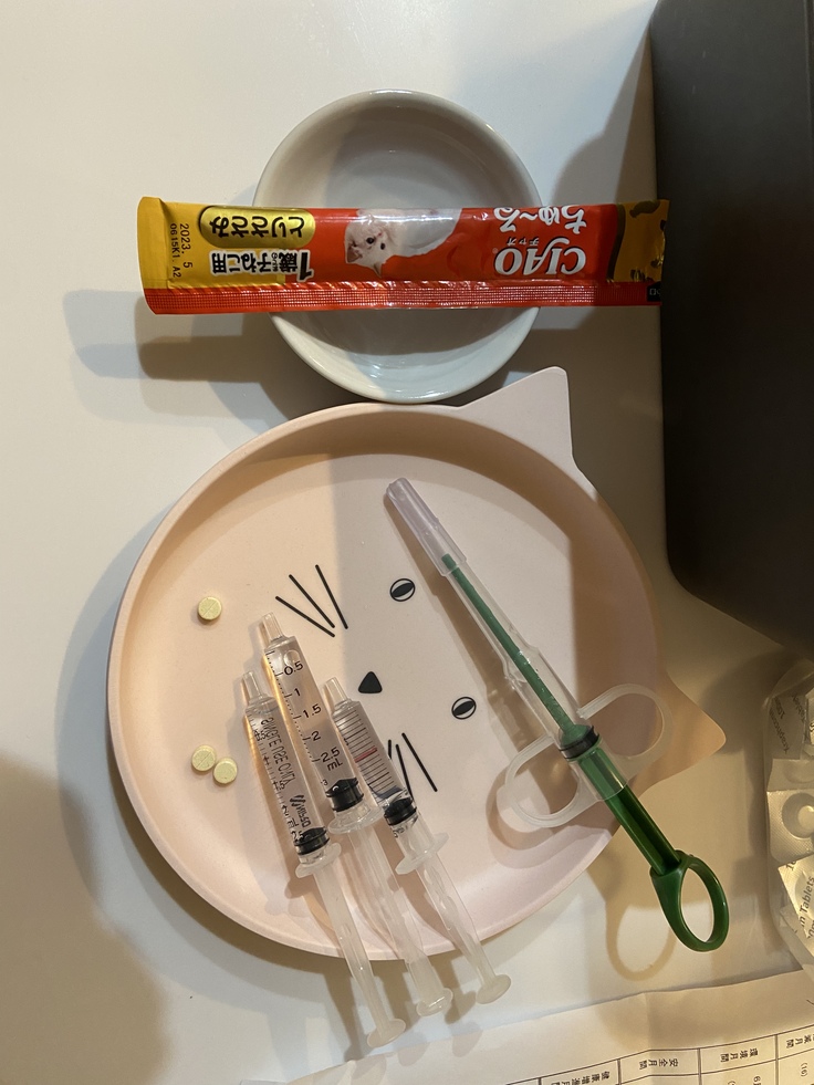 投薬量は体重2.31キロから量が350mgに増えるため、途中で体重が2.31キロ以上になり投薬量が350mgになる場合は1,2回目通院時に投薬失敗を考慮して多めに処方していただいていた分で補完することになりました。