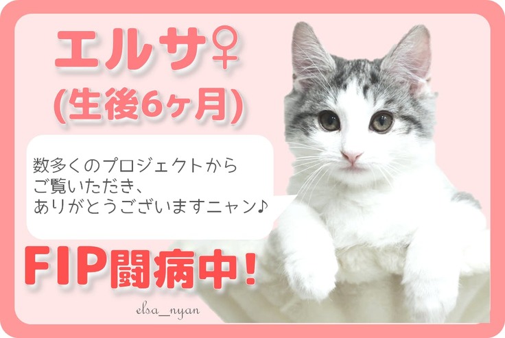愛猫、エルサが生後わずか半年で、 致死率の高いFIPに罹患したので、 初めてのプロジェクトを開始しました。 みなさま、応援よろしくお願いいたします...!