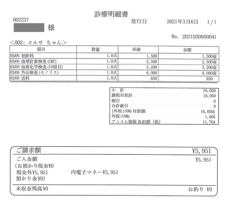 保険が効いて自己負担額は5,951円で済みました。