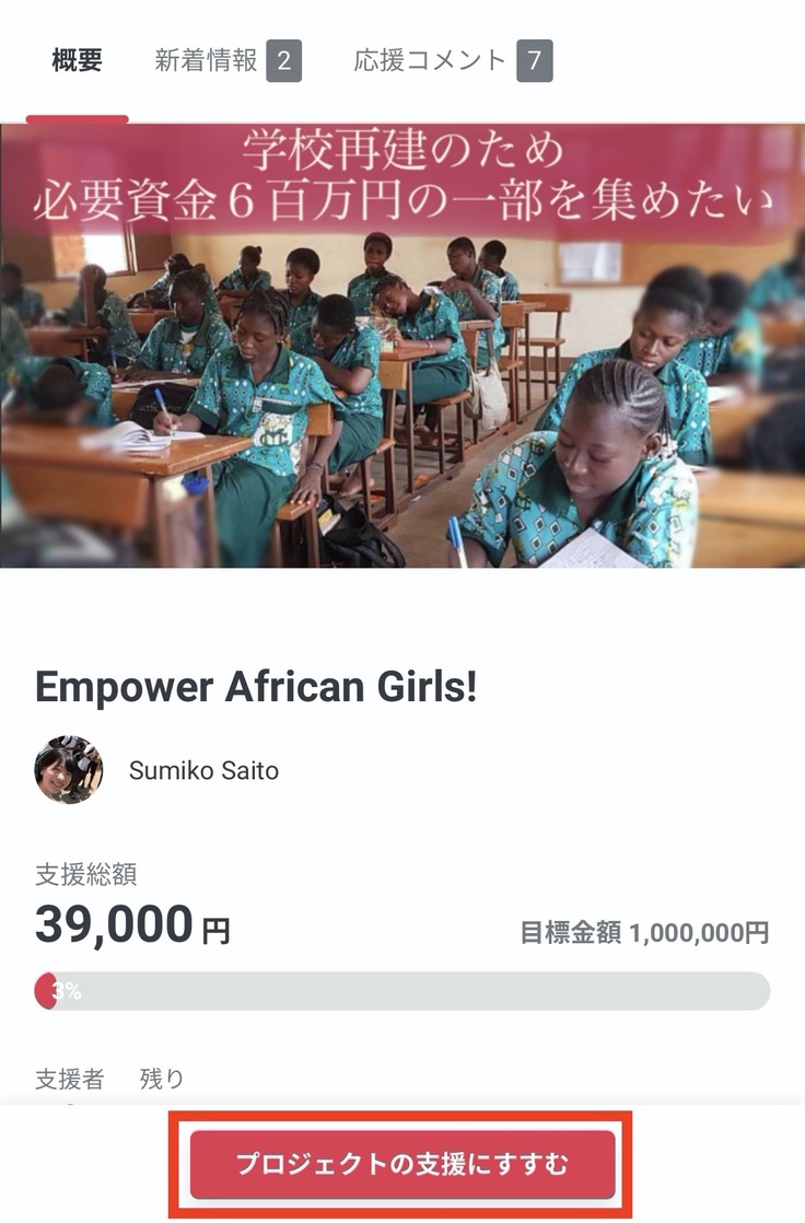 Please go to the project page and click プロジェクトの支援にすすむ again.