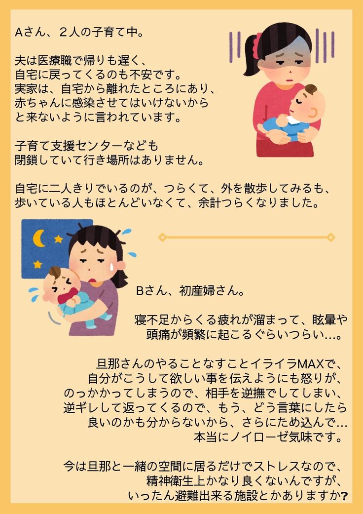 また、退院後は、家庭外からの感染の不安で、実家の両親やベビーシッターなどにも頼ることができず、孤立した状態の妊産婦さんが増えました。