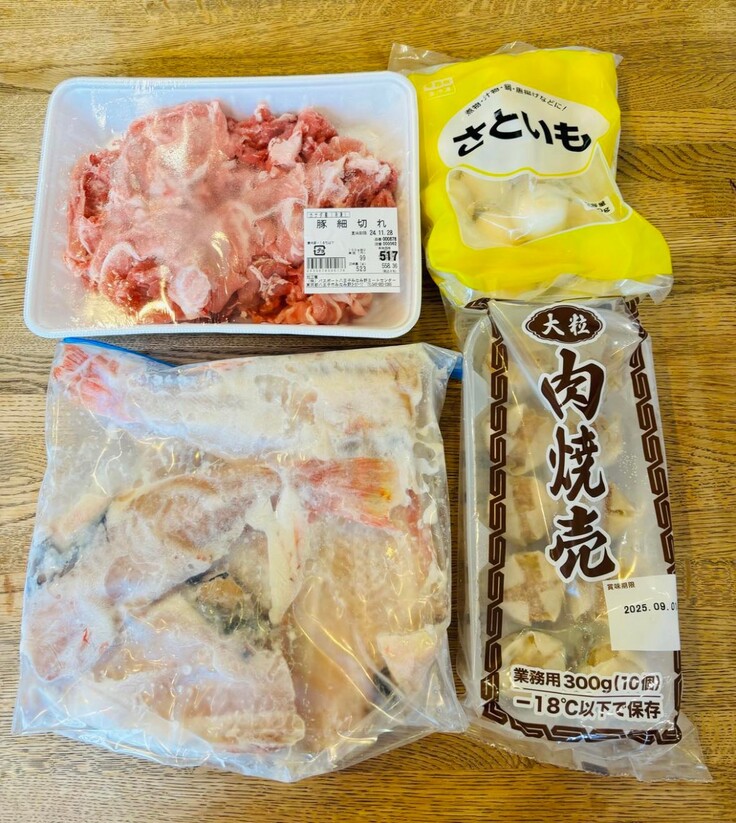 ・豚小間肉・肉焼売・里芋・赤魚の粕漬