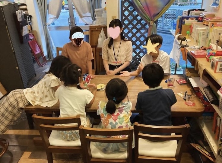 計13人がごちゃまぜで遊びこみ、最後には子どもたちだけで自然とカードゲームが始まったり、