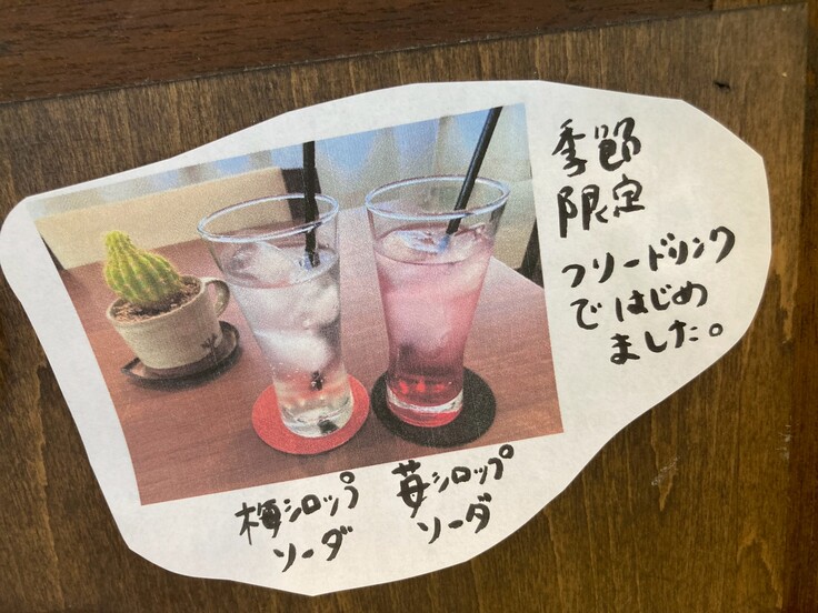 かき氷は9月まで。また、かき氷シロップを活用した、梅ソーダと苺ソーダを