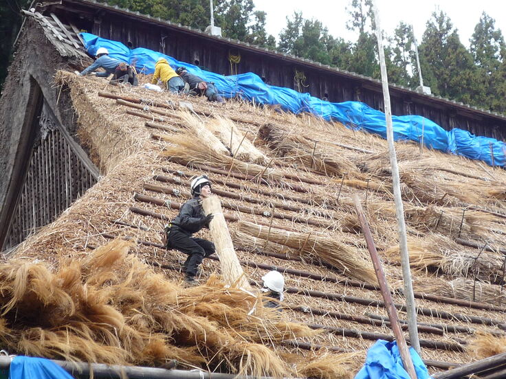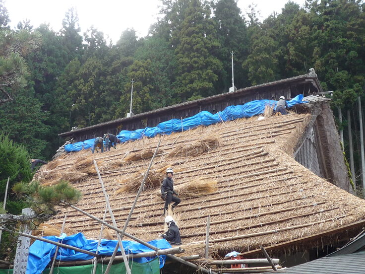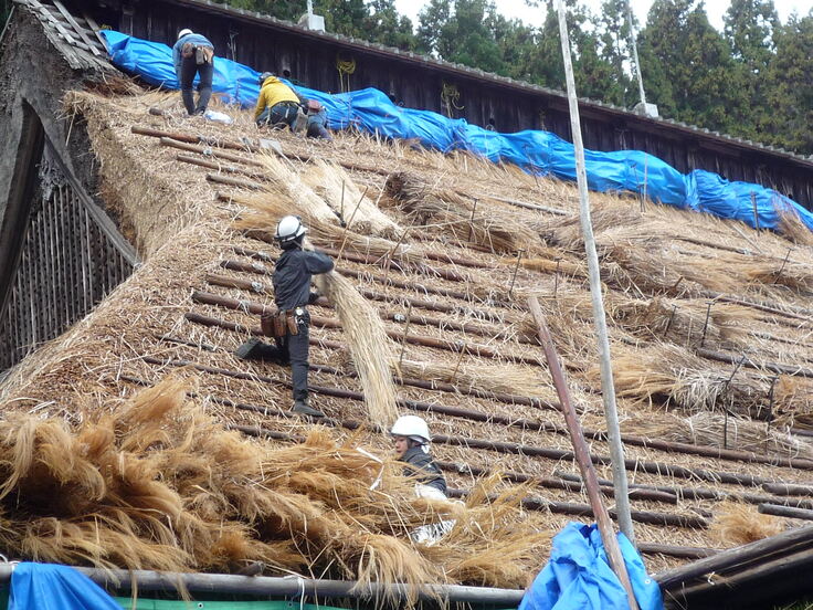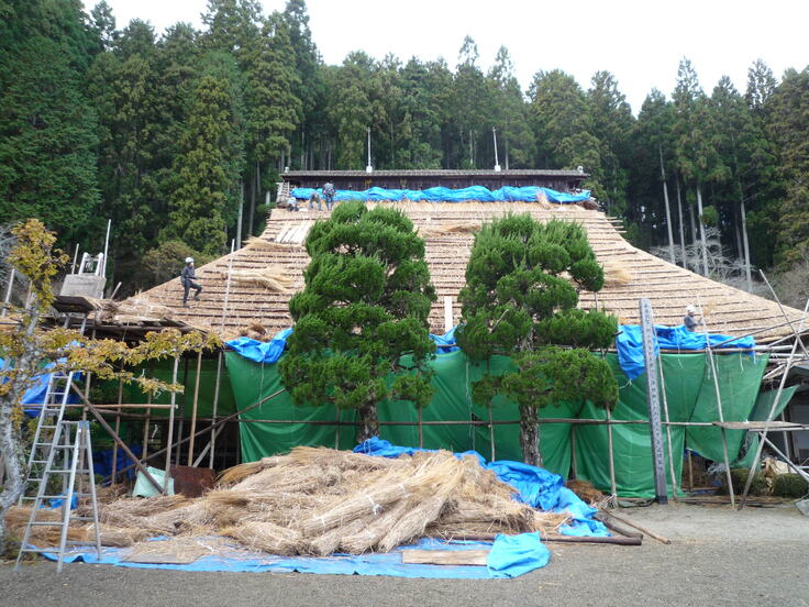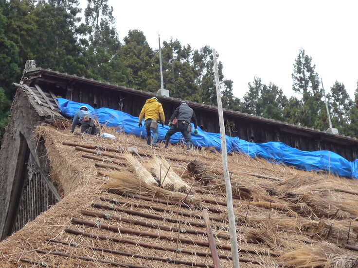 茅刈と屋根工事 もうあと少しで完成です。 もっと見る〉をクリック