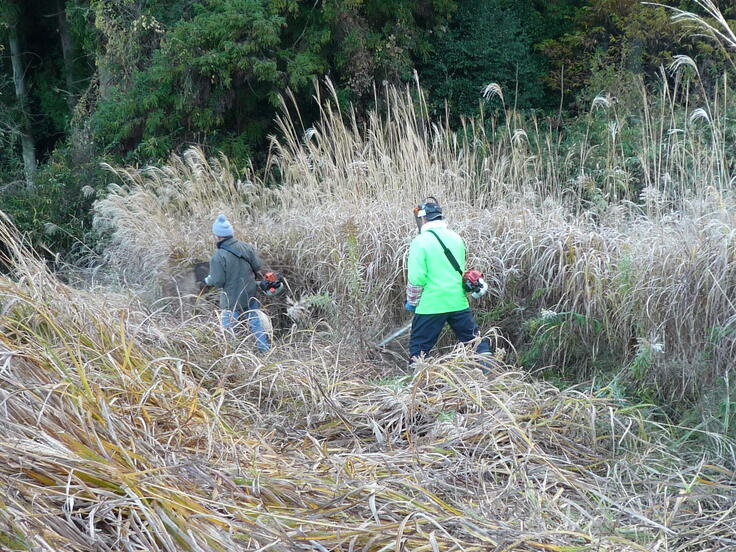 後で束ねやすい様に上手に倒していきます。