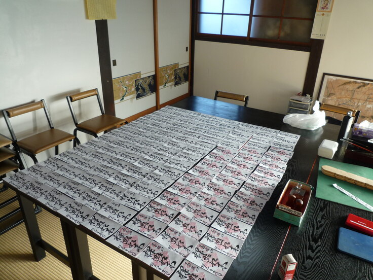 返礼品準備が始まりました。お名前を掲載するのに、絵画の作者さんから場所の提供をして頂きました。