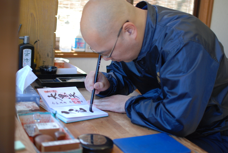 今年も参拝者さまのご健康を祈念して一枚一枚、心を込めて書いております。 慧日寺 門脇知眞住職