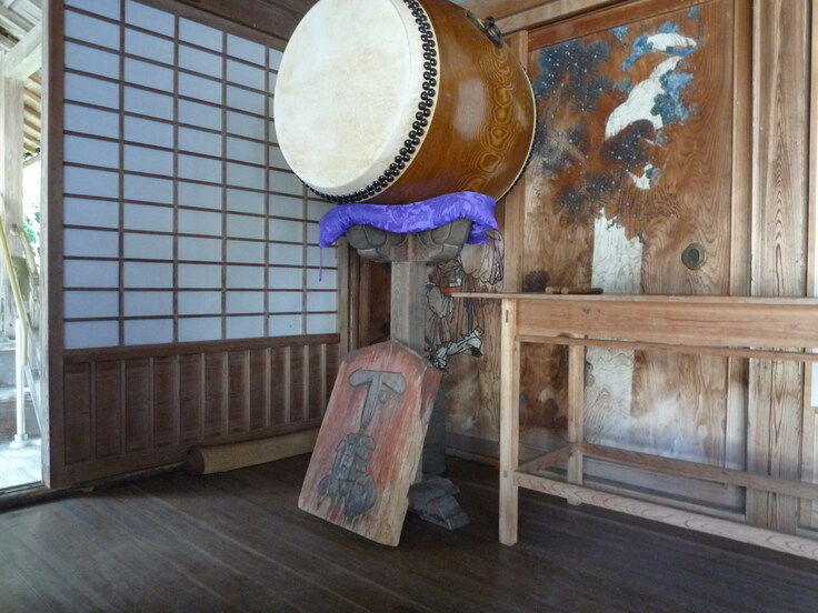 本堂左側にある法鼓(ほっく)です。儀式の進行を鳴らし方で知らせます。鳴らし方で全ての進行が知れ渡ると言う優れた太鼓です。