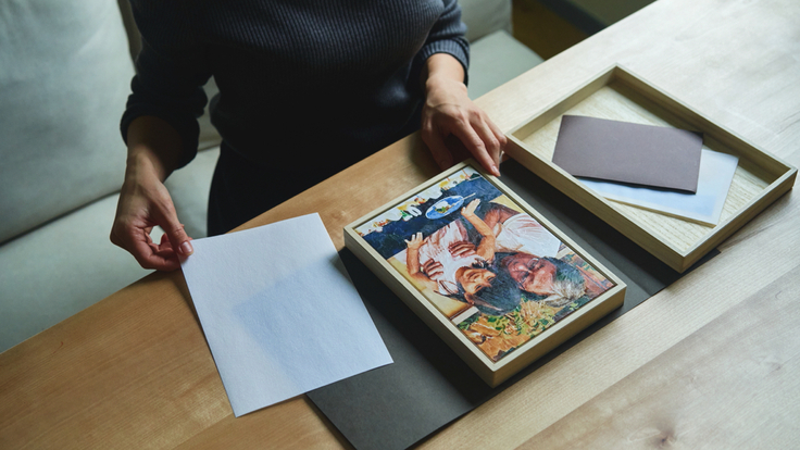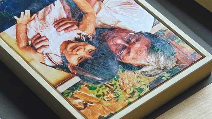 enisuruは、幸せを感じるかけがえのない瞬間の写真を、あえて絵にして飾れるようにすることにこだわりました。