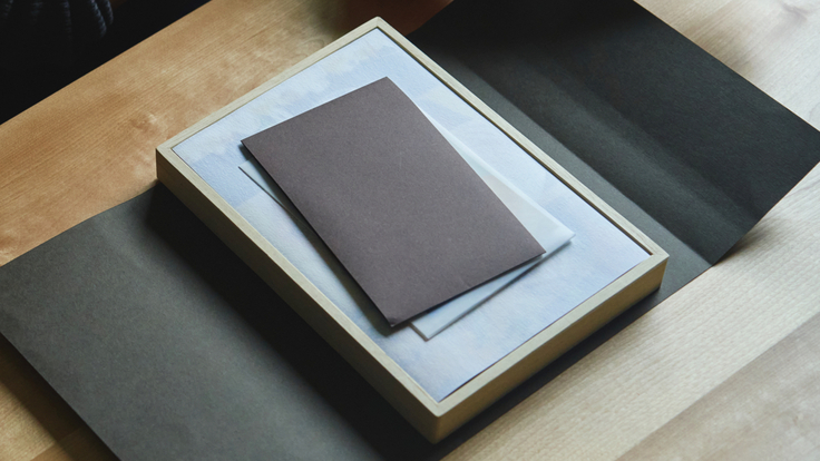 【デザインされた桐箱と額縁】は調湿性に優れ、熱にも強い桐を利用しています。箱そのものも無駄にせずに使い続けられるようにしました。