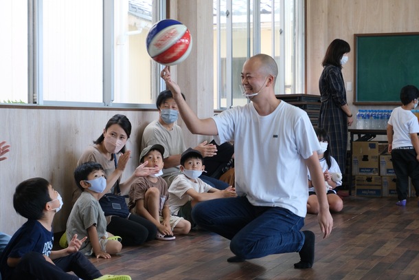 子どもたちとボールパフォーマンスを、楽しんでもらう。