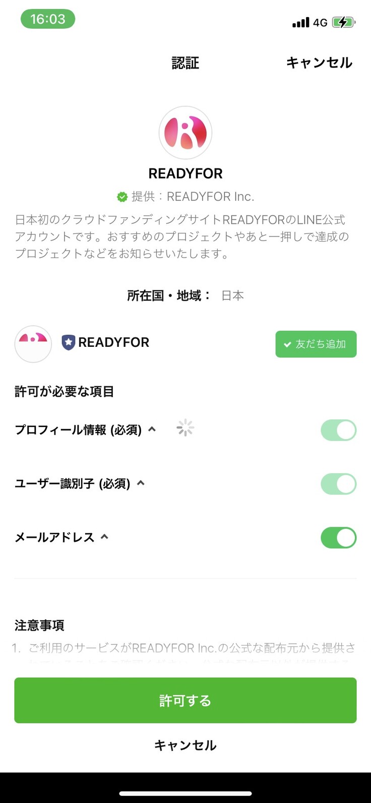 ②許可するをクリック後、次のページでこの内容を登録を実施し、登録完了後支援にすすめます。