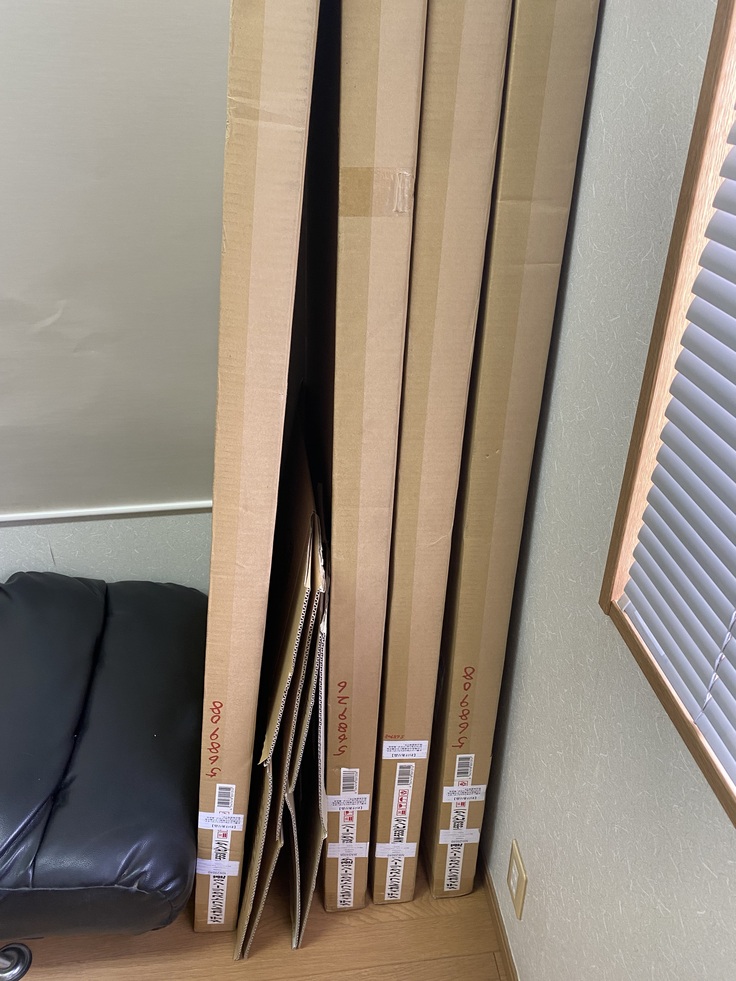パーテーションが届きました。まだ、段ボールのままですが、後日組み立てようと思います!組み立てたら報告します!