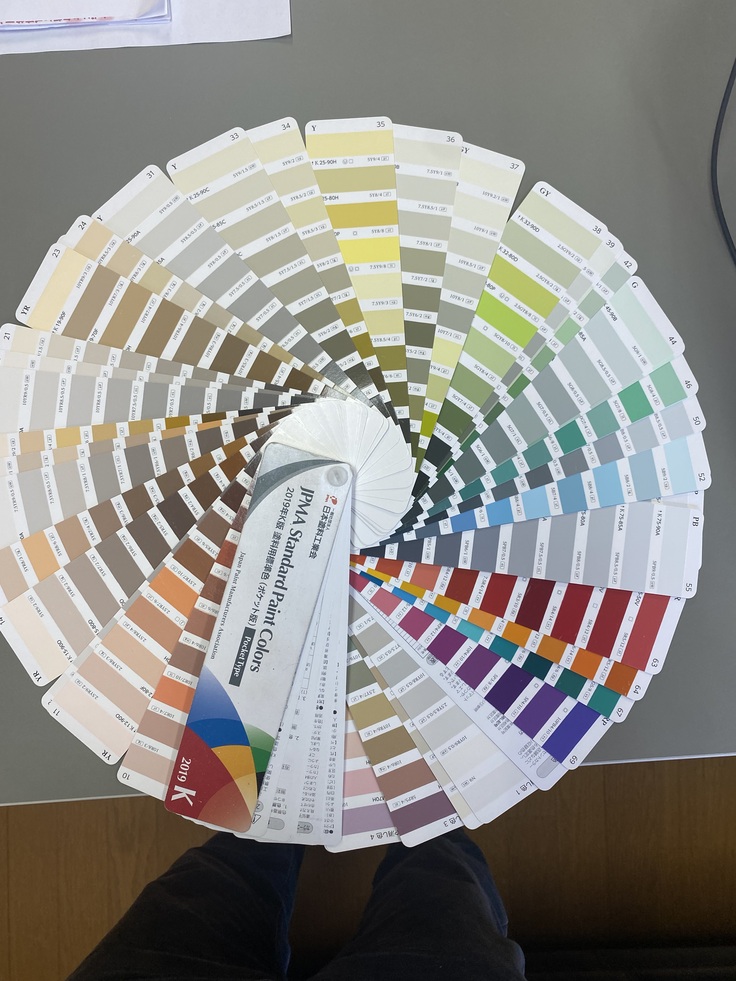 外壁の色を決める事になりました!当事業所のロゴやイメージカラーがピンクなので外壁の色もピンク色になると思います!!ピンクといいますが、いろいろなピンクの色があるので悩みますね!3人で決めようと思います!!