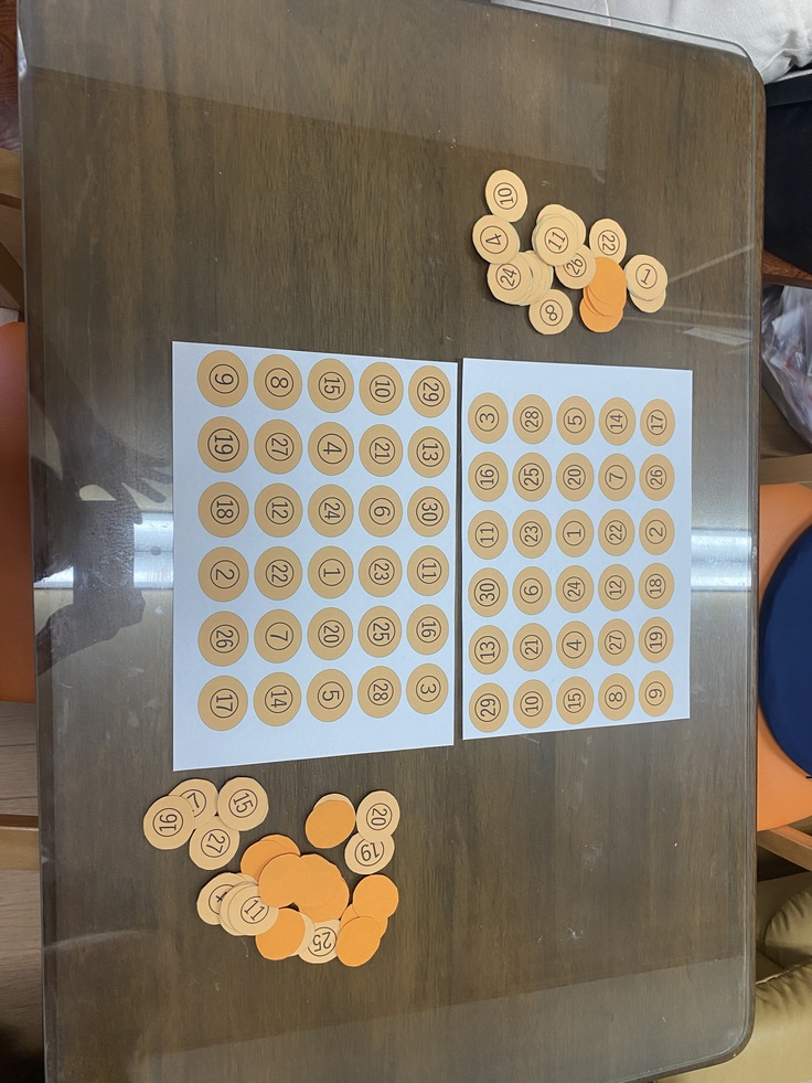 最後に工作をしております!今朝と同様丁寧に一つづつ番号の付いたコインを作りました。手を使うレクレーション道具にしようと思います!!