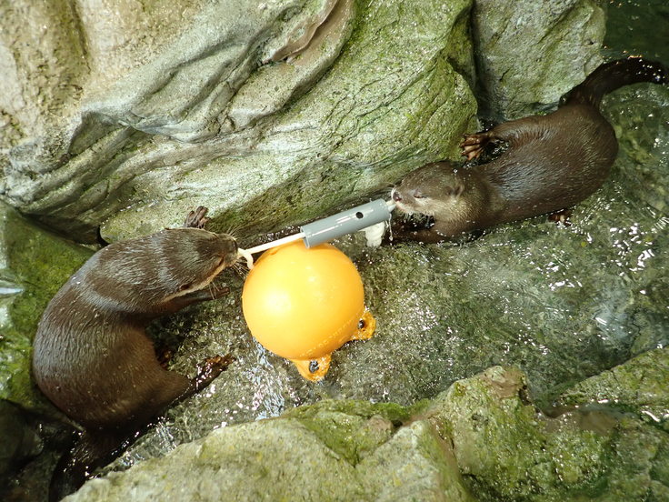 大内さん作成の、カワウソ用おもちゃ。どんな遊び方になるのかは生き物次第。今回はひっぱって遊んでいます。