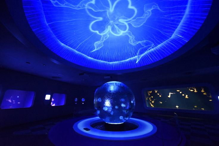 Q:クラゲファンタジーホールは、定期的にクラゲが別の水槽に移動することがありますが、季節などを考えたレイアウトなのでしょうか? 1番大きいところにいたパシフィックシーネットルが小さめの水槽に移動していたので個体数が減ってしまったのか心配です…。(よこたさん)