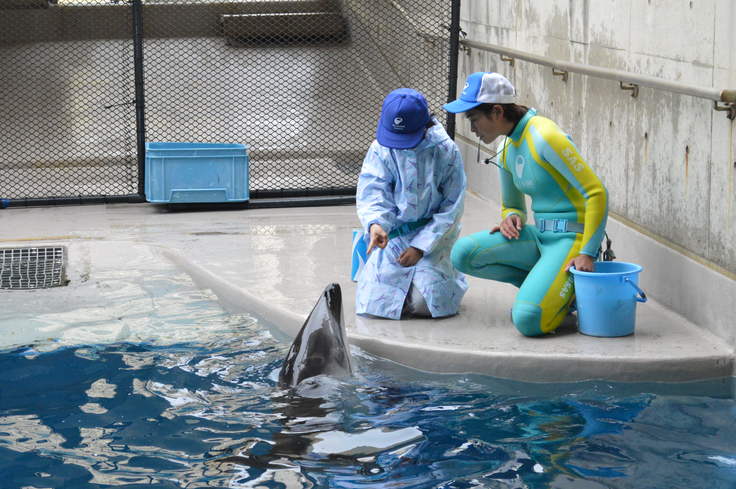 新卒で “えのすい” に入社し、早16年。以前は鯨類(クジラ・イルカなど)を担当、今年の2月からはペンギンとカワウソの担当に。
