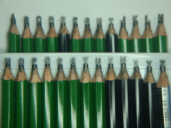 限定鉛筆を用いたアルファベット1文字の鉛筆彫刻