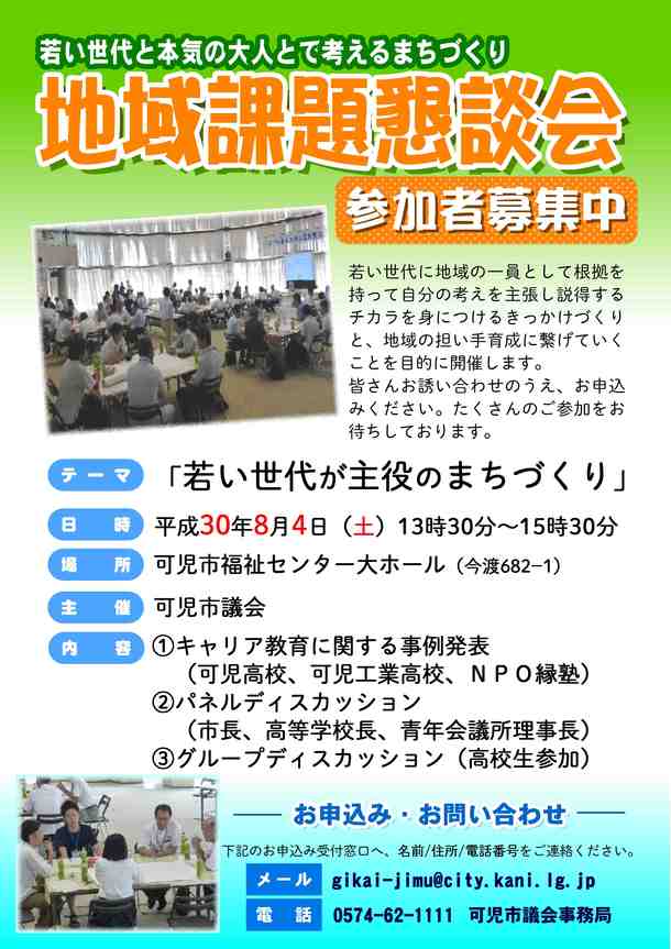 高校生による地域活動の取り組み発表や、可児市長や市内高校の校長をお招きしてのパネルディスカッション、高校生と大人での対話の時間なのど盛りだくさんです^^