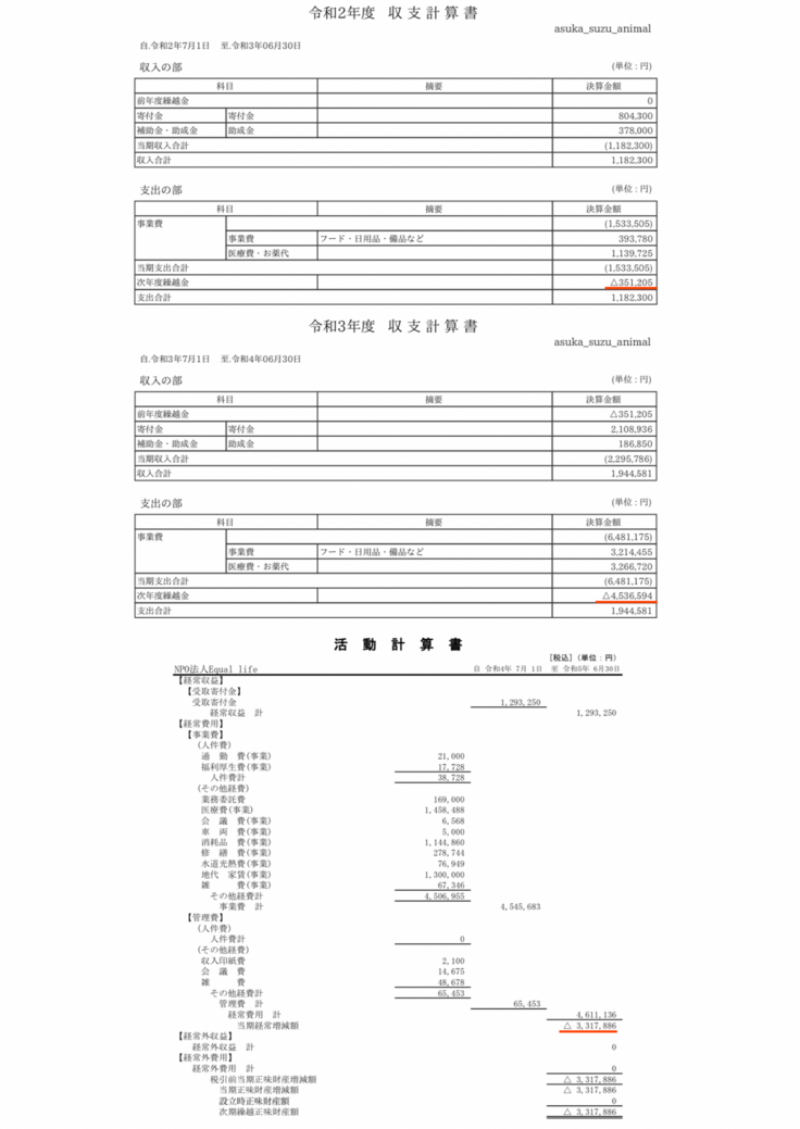 ▼ 2020〜2023 収支計算書