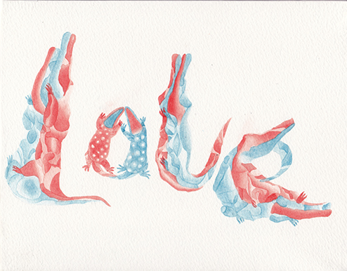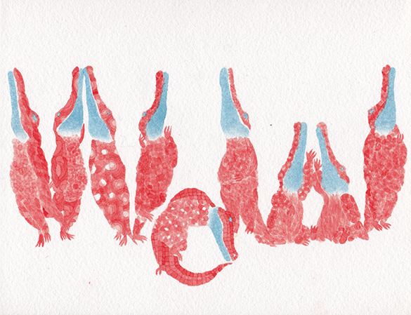 ワニ文字はちょっと気持ち悪さがあるのですが、独特の雰囲気があって、気楽な気持ちで見れる作品です。気取らず、プレッシャーを与えず、見た人がちょっとでも笑顔になってくれればいいなと思って作成していましたが、昨年、韓国でのイラストフェアに出展した時、この絵を見て多くの方が笑顔になってくれました。