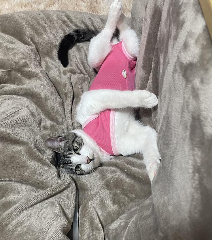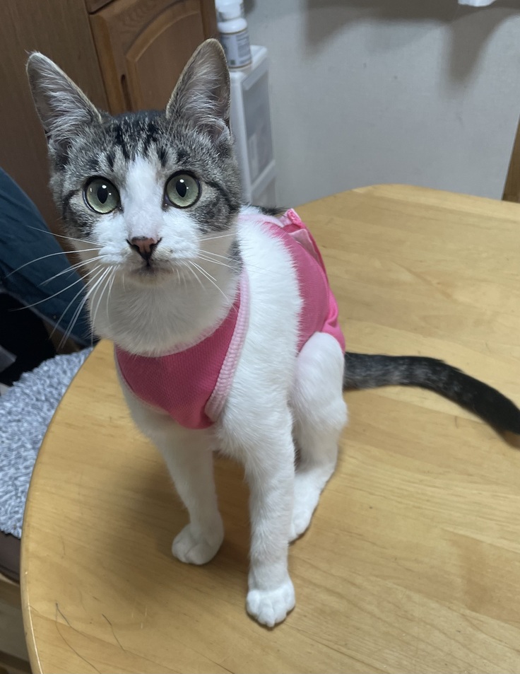 病院で一泊させていただいたのですが、ジッと動かず、ずっと緊張してた様子で、でもご飯は先生が見てない時にモリモリ食べてたそうです笑
