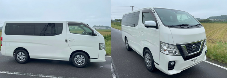 一台はトヨタハイエースワゴン(10人乗り)、もう一台は日産キャラバンワゴン(10人乗り)の2台です。