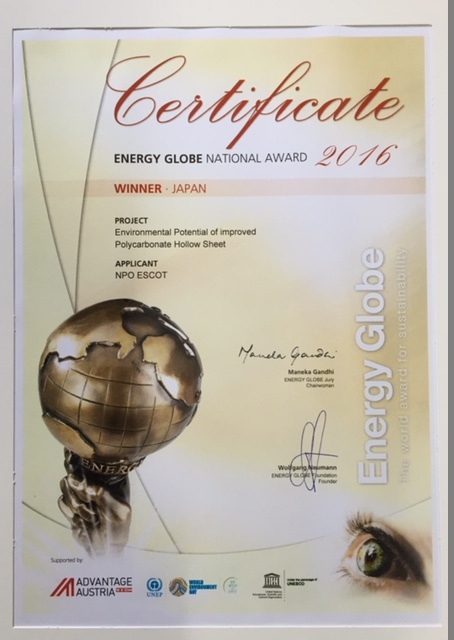 *太陽熱回収システムで「ENERGY GLOBE AWARD受賞」