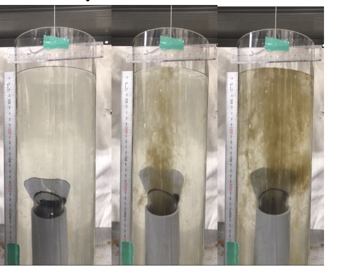 *写真左:海中での湧昇状況/写真右:上下動による粒状体の湧昇状況(出典:芝浦工業大学)