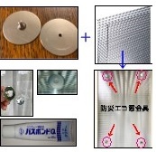 *窓補強構造=窓ガラス面に特殊金具を張り、中空ポリカ板(物流緩衝材でも可能)を固定