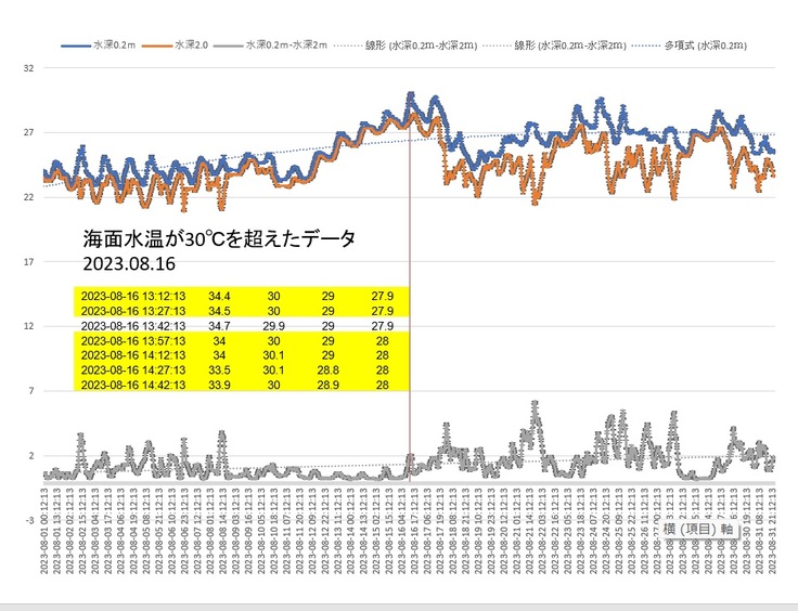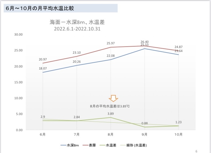 その結果、2022年8月では約3.9℃の水温差がある事が判明しました。