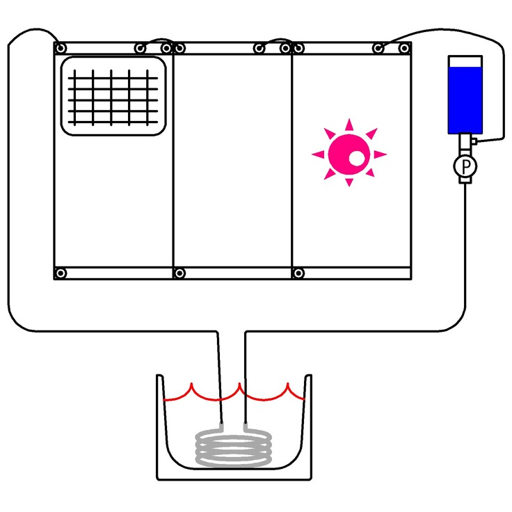 ③中空素材による太陽熱回収装置開発=中空ハモニカ構造のポリカーボネート中に水を通したソーラー活用