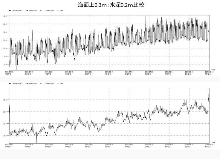 *御宿町岩和田漁港での実験では2.5メートルの水深差でも最大約4℃の温度差を記録しました。