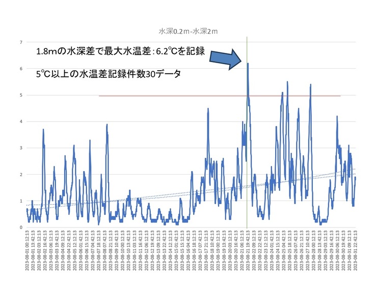 *2022/08/18にはなんと8℃の上下水温差を記録しました。