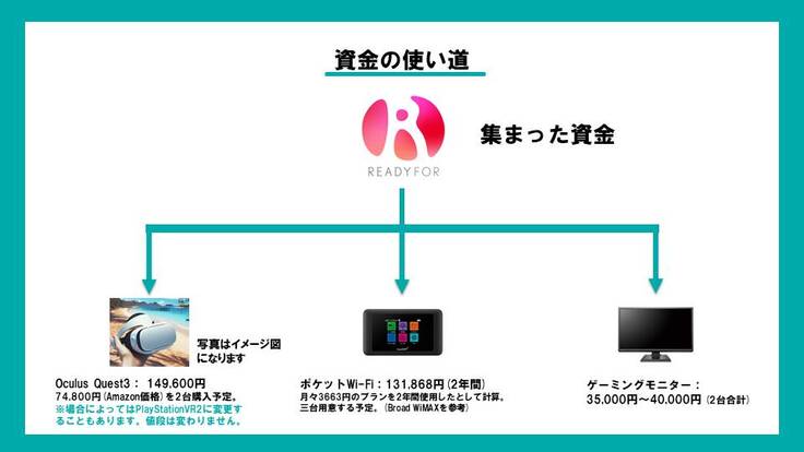 今後も、継続して活動を実施するためには、VR*の購入費用やWi-Fiを継続して借りる資金が必要です。そのため、クラファンにて、ご支援を募りたいと思っています。
