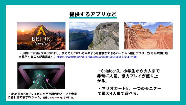 「だったら、VRなら海外旅行できるし、病院でも気軽に楽しめるよね。」