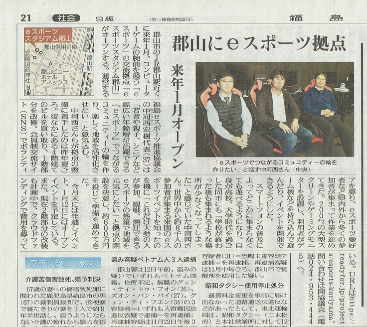 2019年12月13日の福島民友新聞様に取り上げていただき、記事を掲載していただきました!