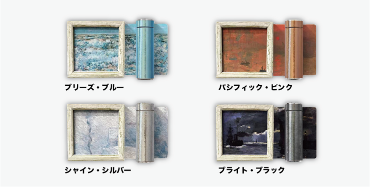ボトルカラーは全部で4色をご用意させていただきました。それぞれに本体色に合わせてグリーンレザー製のケースが付属してます。