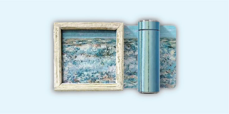 ブリーズブルーは、静かな海と大きな透き通る空のイメージから作りました。落ち着きの中に爽やかな印象のデスクトップボトルです。