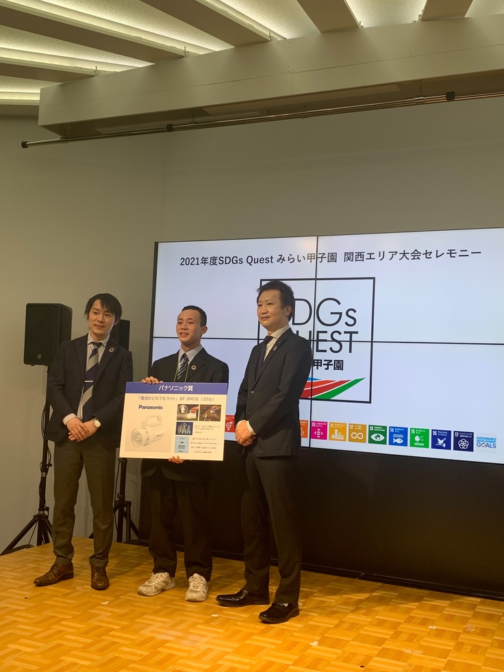 この気候変動を楽しく、面白く伝えるというアイディア、私たちの行動は「SDGsQUESTみらい甲子園」にて関西エリア269チーム中12チームのファイナリストとなり、パナソニック賞をいただきました。