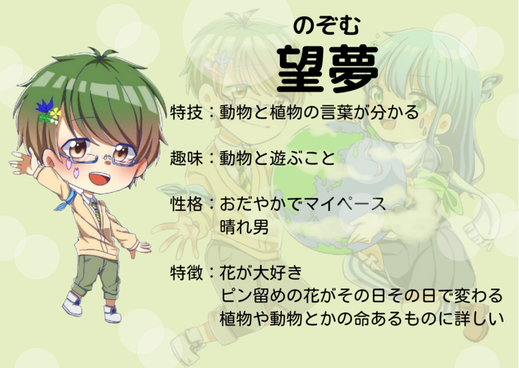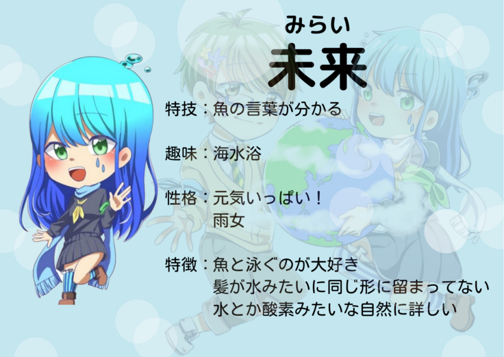ちなみに、高校生エシカル推進委員会で作成したキャラクターは男の子が「望夢(のぞむ)くん」、女の子が「未来(みらい)ちゃん」です。