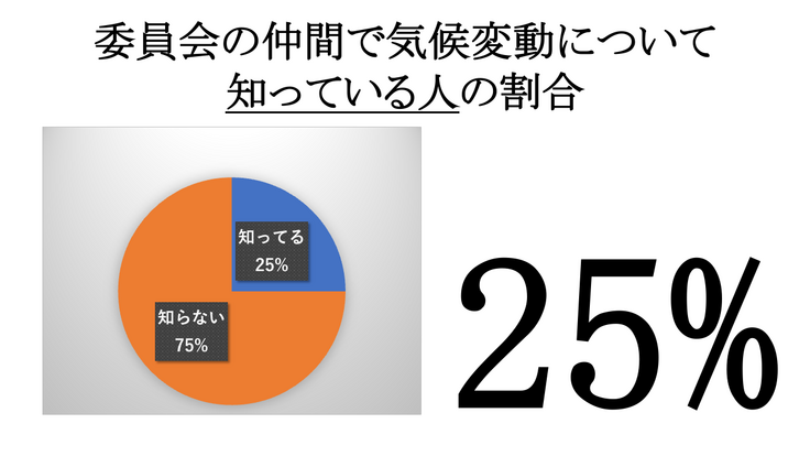 さて、初めの「25%」という数字は一体何を表しているのかですが、これは「高校生エシカル推進委員会の中で気候変動について知っている人の数」です。
