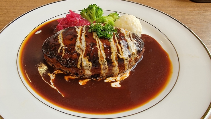 <猪鹿鳥ハンバーグ> 贅沢の極み。猪・鹿・鳥の肉を合い挽きして、坪水醸造の味わい深いソースで美味しく仕上げます。コクのある中にも、それぞれの肉がバランス良くお互いを引き立て合えるように仕上げます。花札好きのあなたにもぴったり!? コクのあるソースとお肉でご飯が大好きになる逸品です。