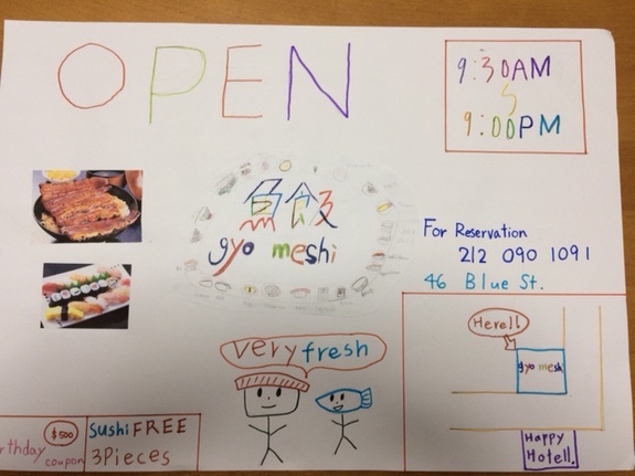 もし海外で日本食レストランをオープンするとしたら?…出店地、お店の名前、コンセプト、メニュー、チラシの作成をしました。
