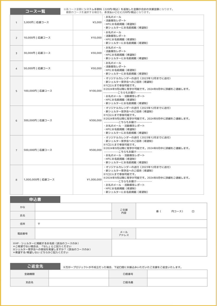 ・新シェルターにお名前掲載(希望制)