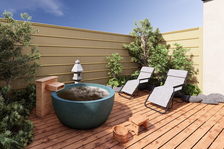 自然を感じながらゆったり浸かる露天風呂と外気浴スペース