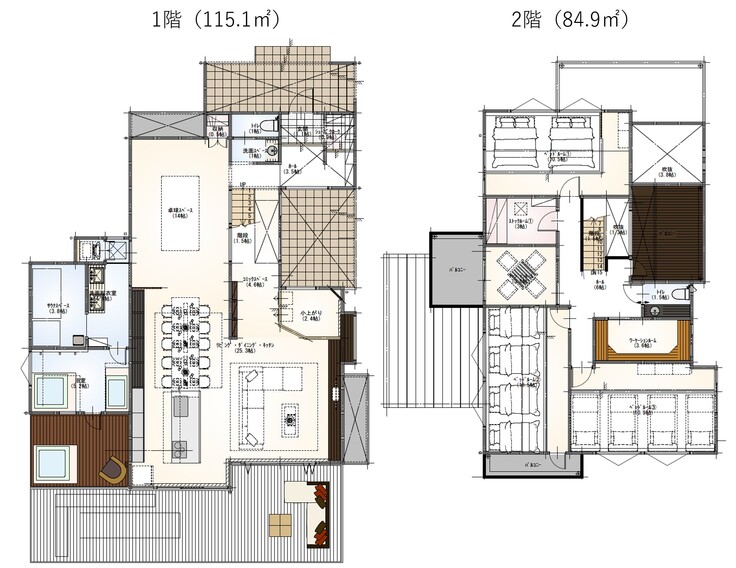 - 吹き抜けがあり、外のウッドデッキまで見通せる開放感あふれる玄関は、第一印象からため息がもれます。